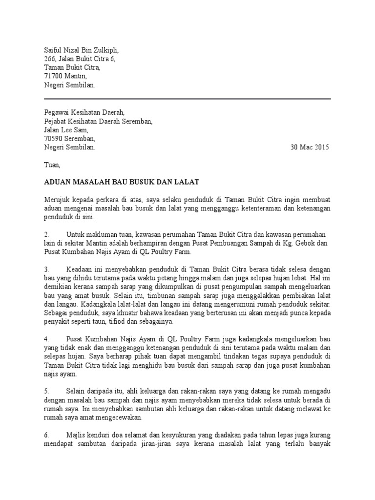 Contoh Surat Aduan Penyelewengan Contoh Surat